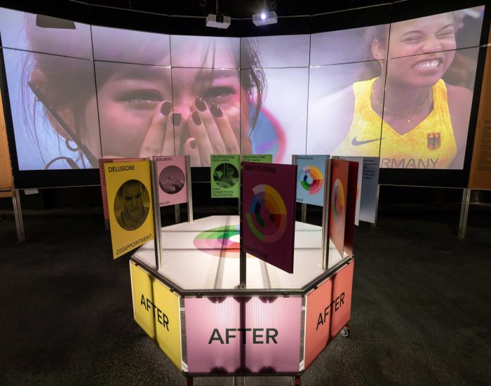 The exhibition explores the emotional dimensions of sport by means of immersive installations and interactive experiences that highlight the ways in which athletes experience, express, and share the emotions prompted by competition on the world stage. At the heart of the exhibition, an installation entitled “Words of Olympians” allows visitors to listen to 24 medal‑winning athlete interviews from the Olympic Museum’s Oral History archive (which encompasses more than 900 testimonies from 123 countries). The show takes the visitor on a journey inside the mind of athletes in an exploration of what transpires BEFORE, DURING, and AFTER a competition.